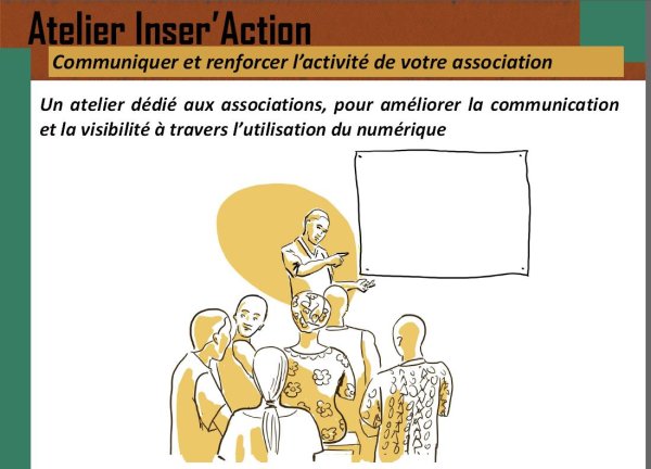 Les Ateliers InserÂ’Action vous proposent de vous familiariser avec les outils numériques pour la création de cartes de visites, de plaquettes et de sites Internet, ainsi quÂ’avec les méthodes de communication (création de boîte mail, rédaction dÂ’emails à lÂ’attention des partenaires, panorama des sites ressources).