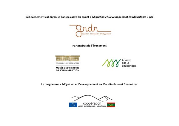 *Cet évènement s’inscrit dans le cadre du projet ’Migration et Développement en Mauritanie’ porté par le Grdr et Allianza por la solidaridad grà¢ce aux financements de l’Union Européenne. Une étude ’mapping de la diaspora mauritanienne en Europe’ a été réalisée de juillet 2017 à janvier 2018, et a permis l’identification des compétences et des pratiques, individuelles et collectives, de la diaspora mauritanienne en France, Belgique et Espagne. Les principales conclusions de cette étude serviront de socle à cet évènement.