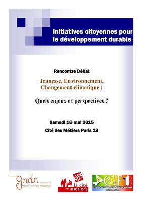 Le Grdr, le CNJMF et la Cité des Métiers, ont le plaisir de vous inviter à une rencontre débat le samedi 16 mai, dans le cadre du programme Ici DD (Initiatives Citoyennes pour le Développement Durable), portant sur le thème :